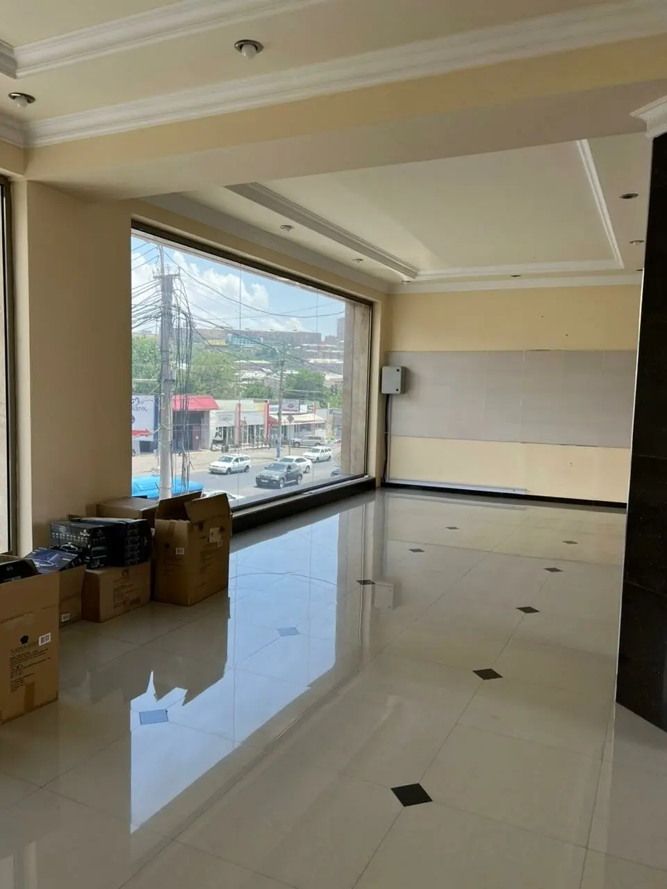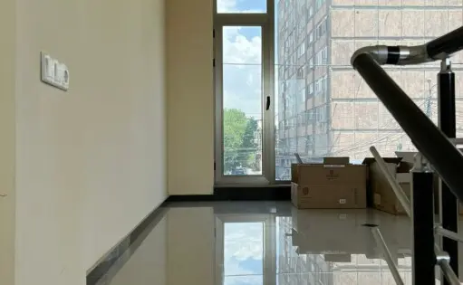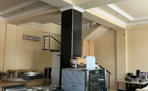A two-story public building is for sale on Acharyan Street. The building has a 16-meter frontage, an area of 420 square meters, and parking for 6-8 cars. Entrance is from Acharyan Street. All utilities are available.