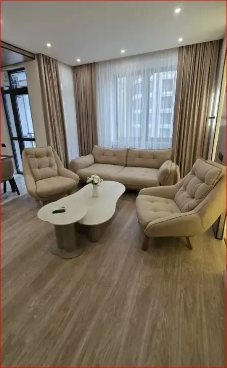 A 2-room, fully renovated apartment is for rent in the Byuregh residential complex. All utilities are available.