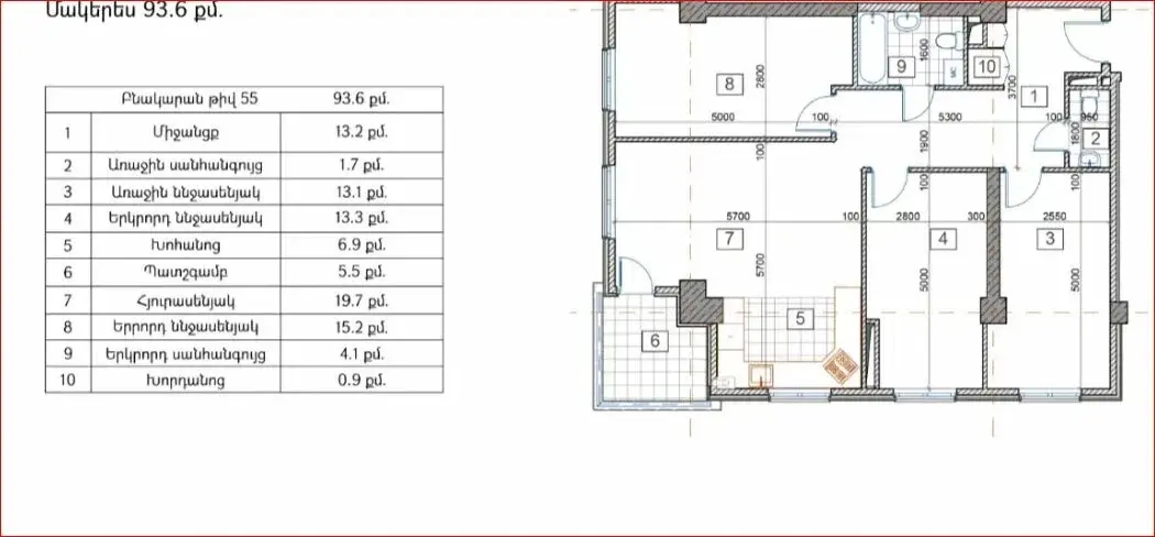 Առաստաղի բարձրությունը: 3.0 Մ